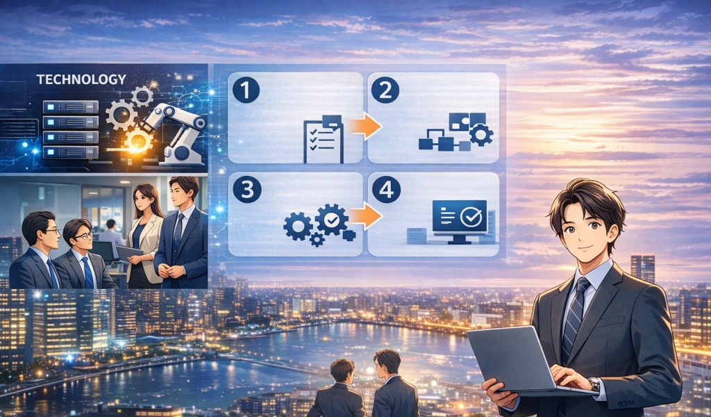目標実現には確かな事業基盤が必要です。そのため現在は、私が最も専門性を有する人材アウトソーシング事業を主軸とし、テクノロジーソリューションの提供を通じて社会貢献を果たしております。